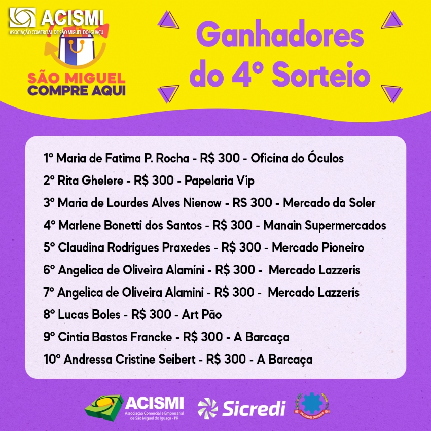 Confira os ganhadores do 4º sorteio: