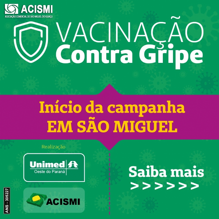 A Associação Comercial e Empresarial de São Miguel do Iguaçu (Acismi) e a UNIMED Oeste do Paraná fecharam uma parceria para a realização da Campanha de Vacinação contra o vírus da Influenza (gripe).