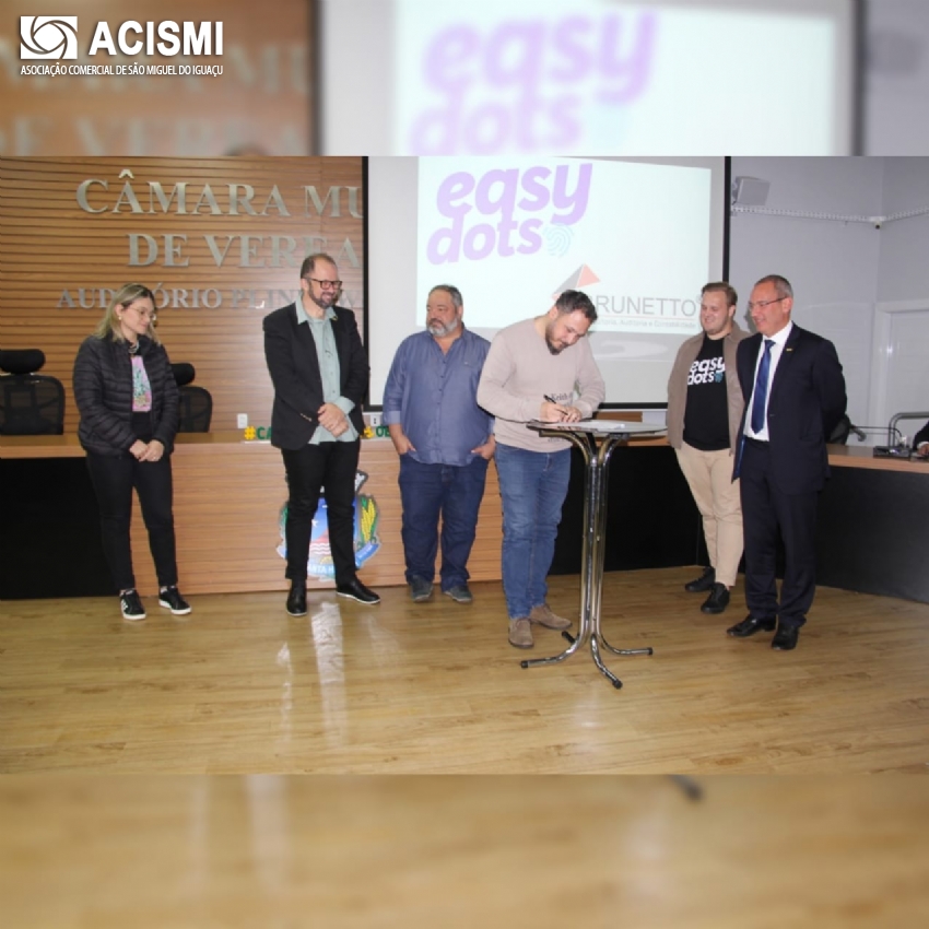 A Associação Comercial e Empresarial de São Miguel do Iguaçu (ACISMI) firmou uma parceria com o aplicativo de ponto digital Easydots. A assinatura do Termo de parceria aconteceu no último dia 28 de maio por ocasião do encontro da Coordenadoria das Associações Comerciais e Empresariais do Oeste do Paraná (CACIOPAR) em Santa Helena-PR.