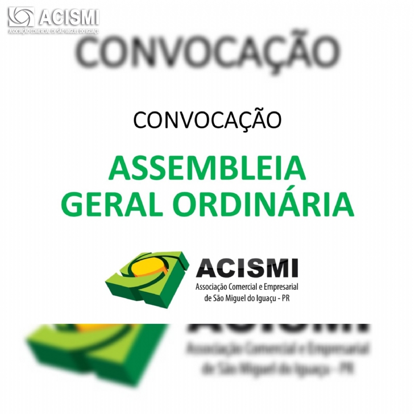 A Associação Comercial e Empresarial de São Miguel do Iguaçu (ACISMI) convoca seus associados para a Assembleia Geral Ordinária que será realizada no dia 30 de novembro às 18h30 em sua sede.