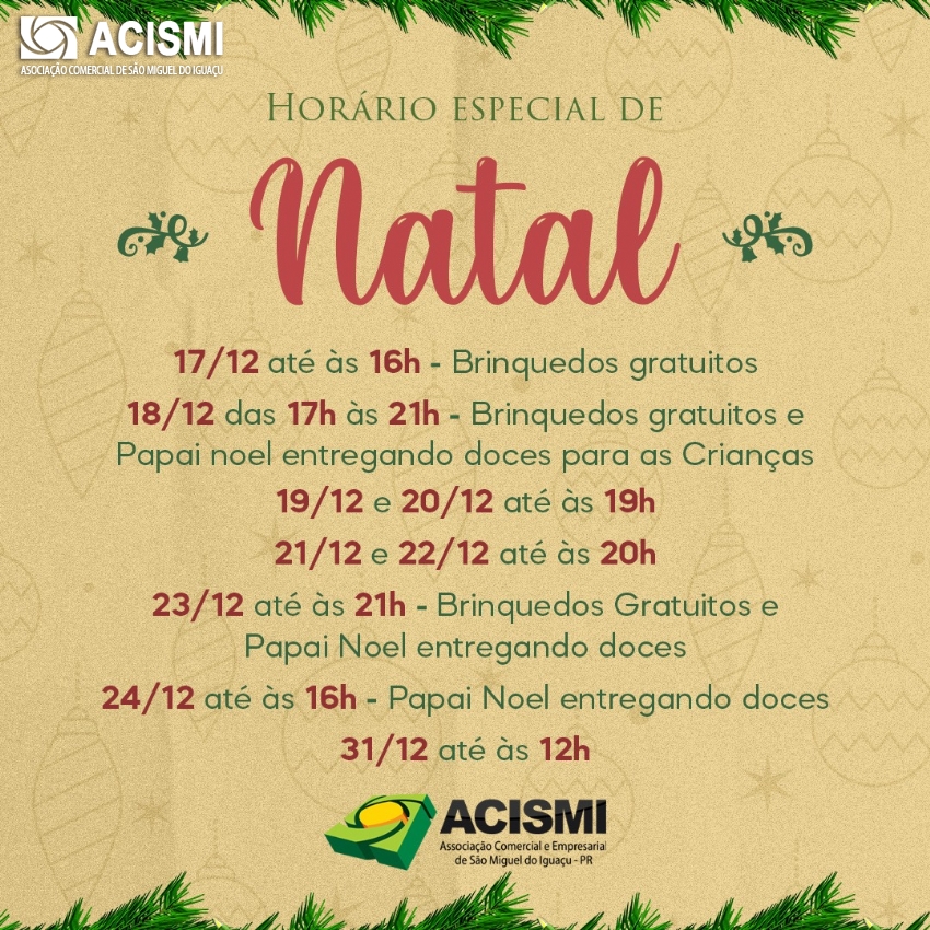 A Associação Comercial e Empresarial de São Miguel do Iguaçu (ACISMI) definiu a programação do comércio para o Natal.