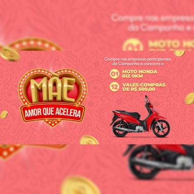 Várias empresas estão aderindo a Campanha ‘Mãe! Amor que acelera’ da ACISMI que vai sortear uma Moto Biz 0 km e 12 vale-compras