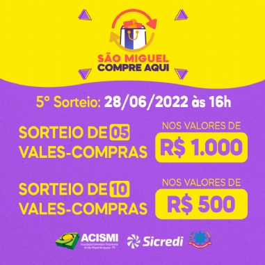 ACISMI vai realizar o quinto sorteio da Campanha “São Miguel Compre Aqui” no valor total de R$ 10 mil nessa terça (28)