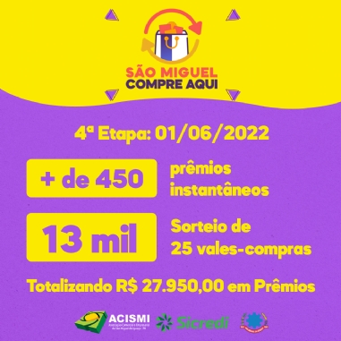 Acismi inicia 4ª e última etapa da Campanha São Miguel Compre Aqui quase R$ 28mil em prêmios