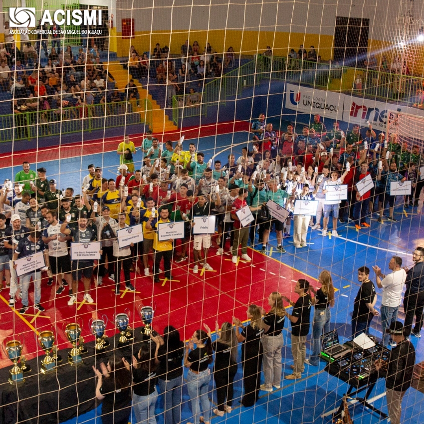 Cerca de 300 atletas entraram em quadra no desfile das delegações para disputar o título nas categorias Feminina, Masculina Livre e Masculina 40+, todos em busca da ‘Taça ACISMI’. Eles estão distribuídos em 23 equipes, sendo 14 equipes da categoria masculina livre, 4 da categoria feminina e 5 da categoria masculina 40+, com apoio de 28 empresas de São Miguel do Iguaçu, associadas na Acismi.