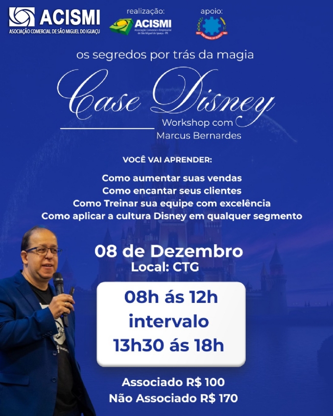 A Associação Comercial e Empresarial de São Miguel do Iguaçu está trazendo um dos treinamentos mais transformadores do Brasil, o Workshop “Os Segredos por Trás da Magia – Case Disney”.